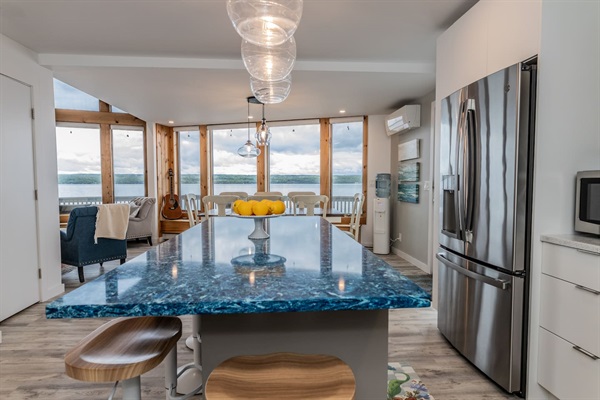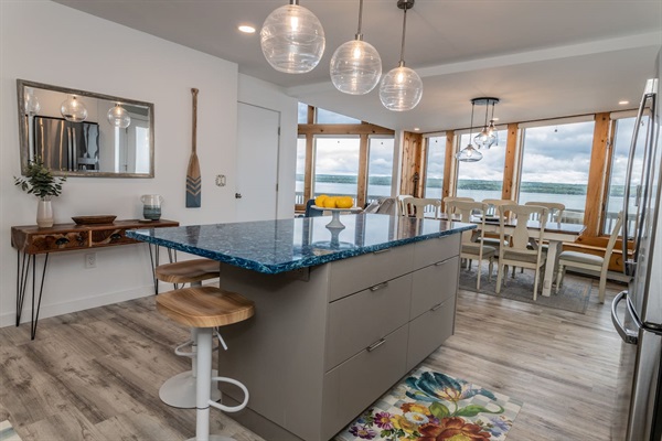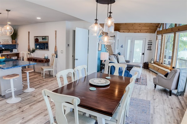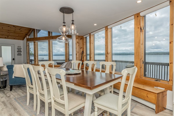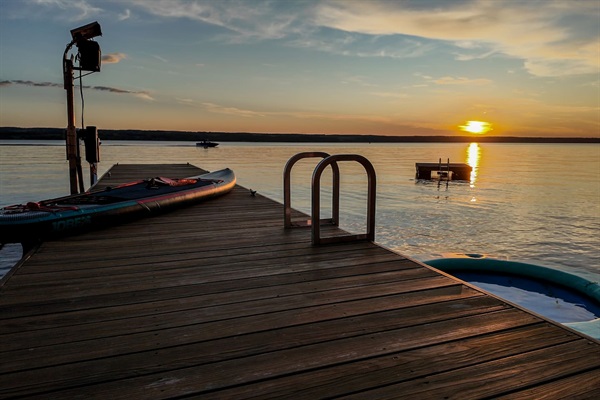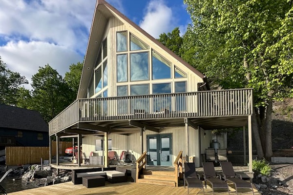 Enjoy breathtaking sunsets as you enjoy a private beach, boat hoist, fishing, kayaks, paddleboards, and more. This stunning retreat offers panoramic views for every floor of the house. Plus a game room, piano and outdoor seating, and lounges.