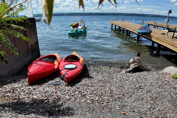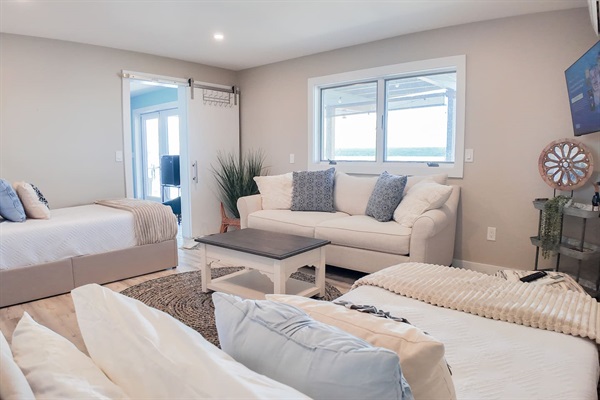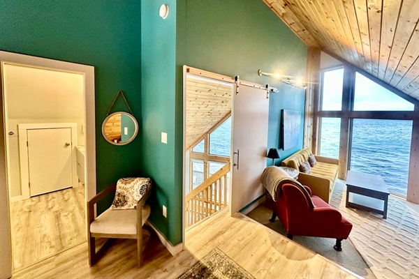 From the bottom floor, you walk right out to the bottom deck.